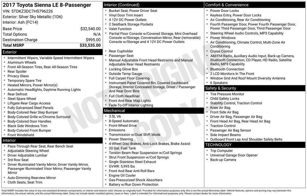 2017 Toyota Sienna LE Auto Access Seat FWD Van
